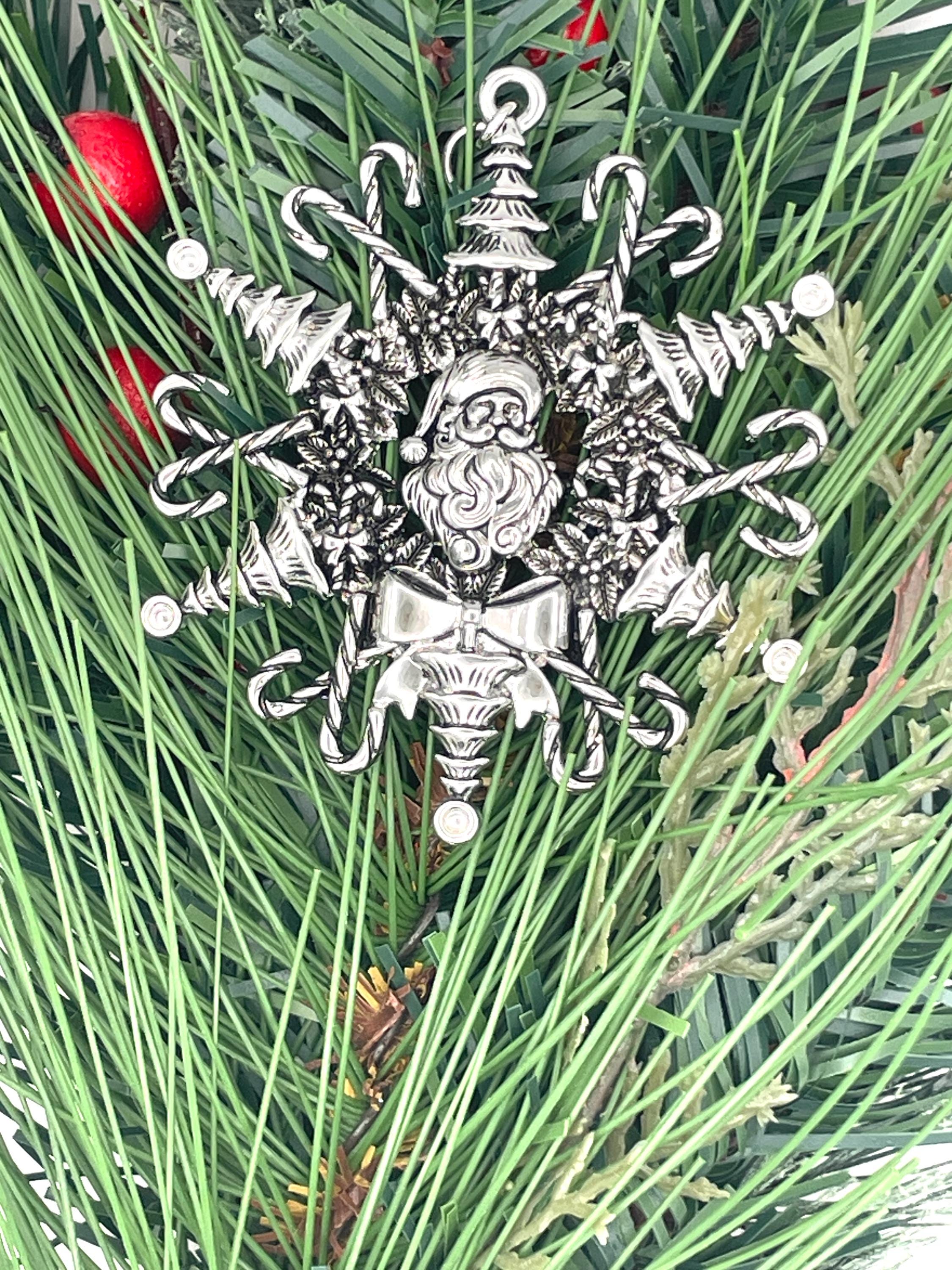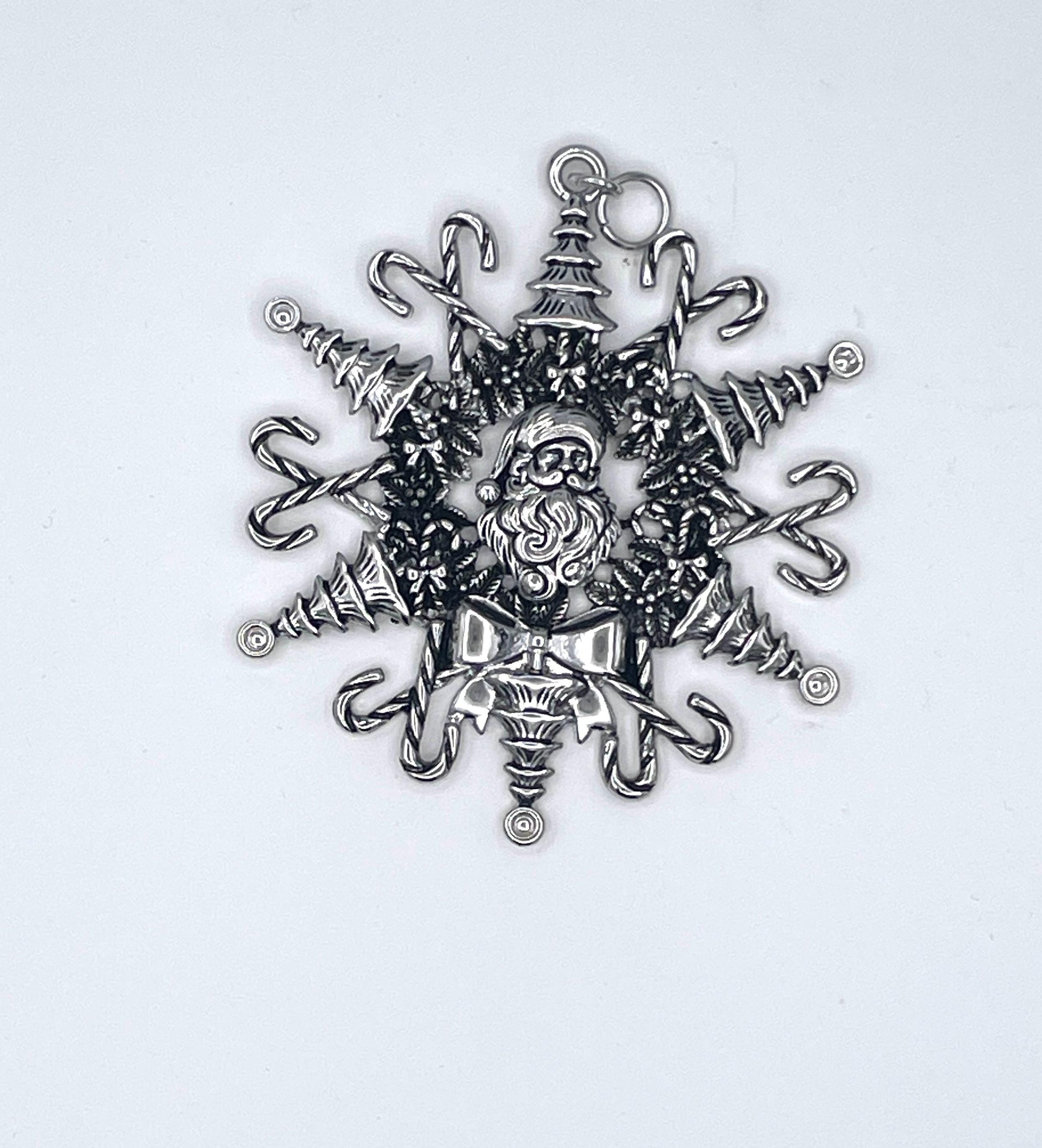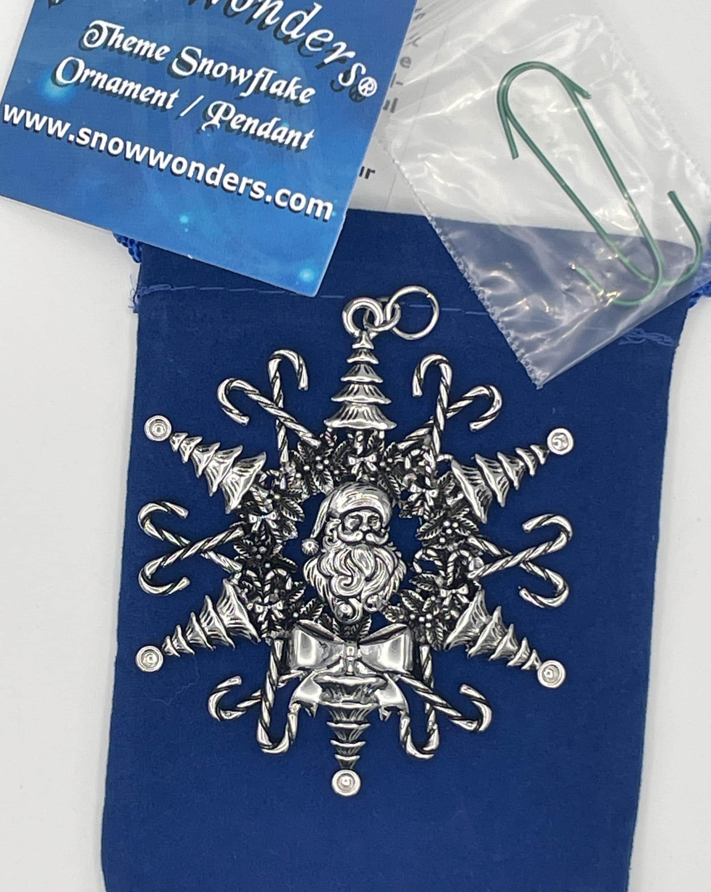 Our Santa Claus Snowwonder Snowflake ornament is the perfect festive decoration! Featuring a charming dimensional Santa at its center, this ornament is surrounded by six delightful Christmas trees and twelve candy canes, beautifully capturing the spirit of the season. A lovely Christmas wreath frames our stunning snowflake design, and just below Santa, you'll find a beautiful bow that completes this enchanting ornament. The details are amazing, making this Santa Snowwonder the ideal addition to any Christmas tree!